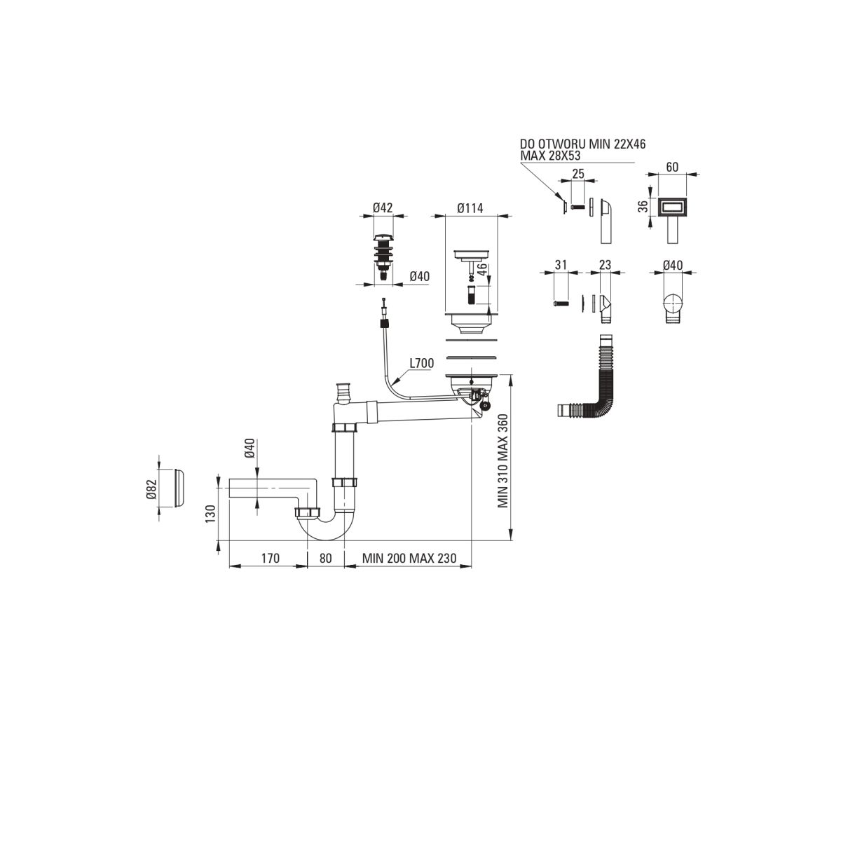3. Deante Space Saver Siphon für 1-Kammer-Granitspülen, schwarz ZXYN972