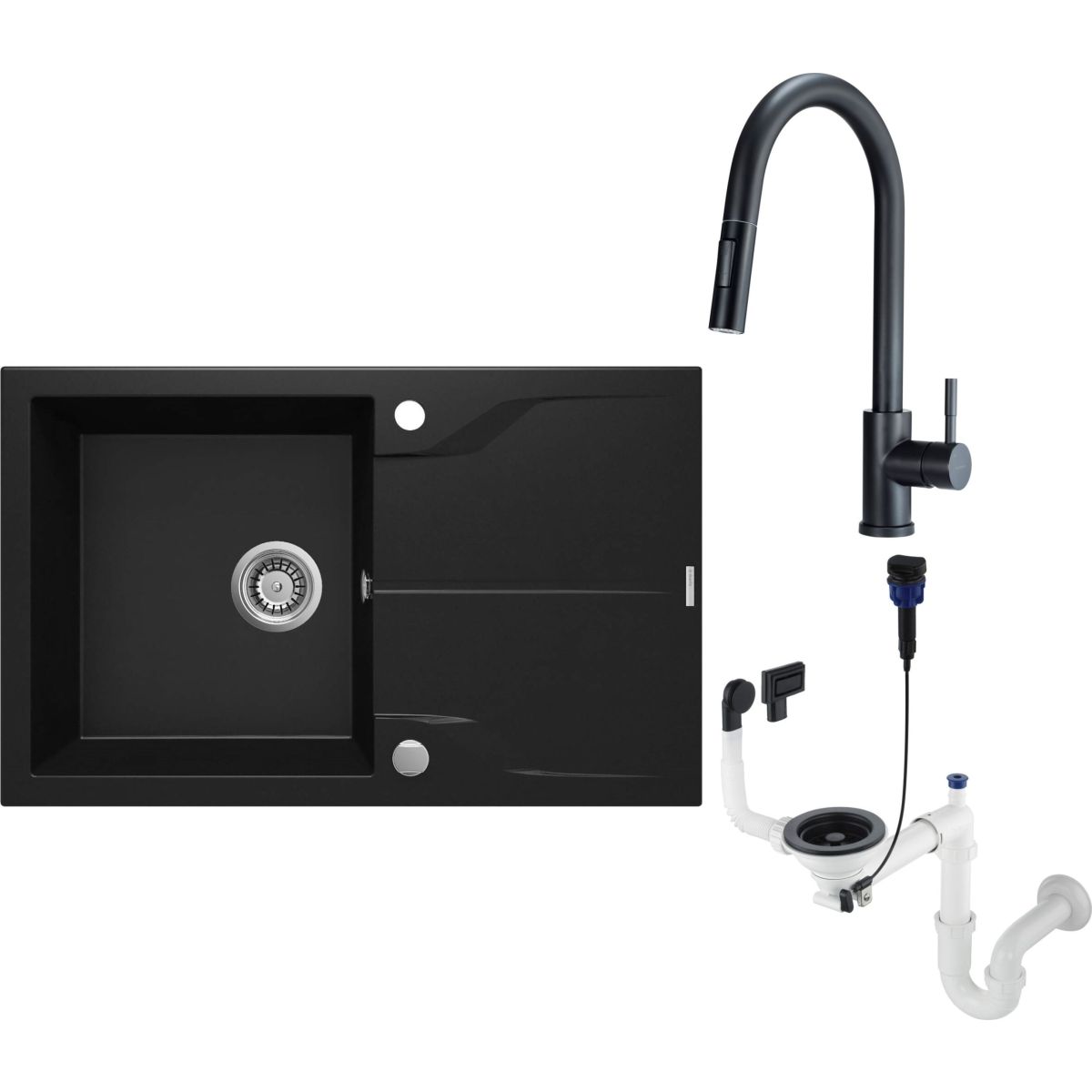 1. Deante Andante Granitspüle 78x49 cm, eingebaut, schwarz matt ZQNN113