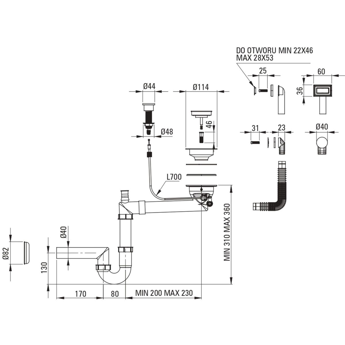 - Mindestbreite des Schranks: 45 cm