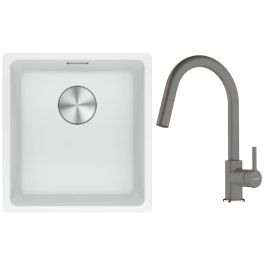 Fragranite-Spülbecken sind die perfekte Kombination aus Eleganz, Langlebigkeit und Komfort. Dank eines Anteils von 80 % natürlichem Quarz fühlt sich die Oberfläche angenehm an und ist gleichzeitig widerstandsfähig gegen die täglichen Herausforderungen – darunter Flecken, Kratzer und kurzzeitige Einwirkung hoher Temperaturen. Franke Granitspülen zeichnen sich durch eine außergewöhnliche Widerstandsfähigkeit gegen mechanische Beschädigungen aus, was sie zur idealen Wahl für stark frequentierte Küchen macht. Dank ihrer besonders glatten Struktur sind Fragranite-Spülen leicht zu reinigen und hygienisch zu pflegen. Das Material hemmt auf natürliche Weise das Wachstum von Bakterien und Mikroorganismen, sodass Franke-Spülen hohen Hygienestandards entsprechen. Darüber hinaus sorgt ihre Langlebigkeit dafür, dass sie viele Jahre lang ihr ästhetisches Aussehen behalten, was sie zur perfekten Wahl für jede moderne Küche macht. Zuverlässige Hygiene Franke-Spülbecken sind eine Lösung, die Pflegeleichtigkeit mit außergewöhnlicher Hygiene verbindet. Dank ihrer glatten Oberfläche, die das Wachstum von Bakterien und Mikroorganismen auf natürliche Weise hemmt, sind sie die ideale Wahl für moderne Küchen und gewährleisten Sauberkeit und Sicherheit bei der Verwendung.