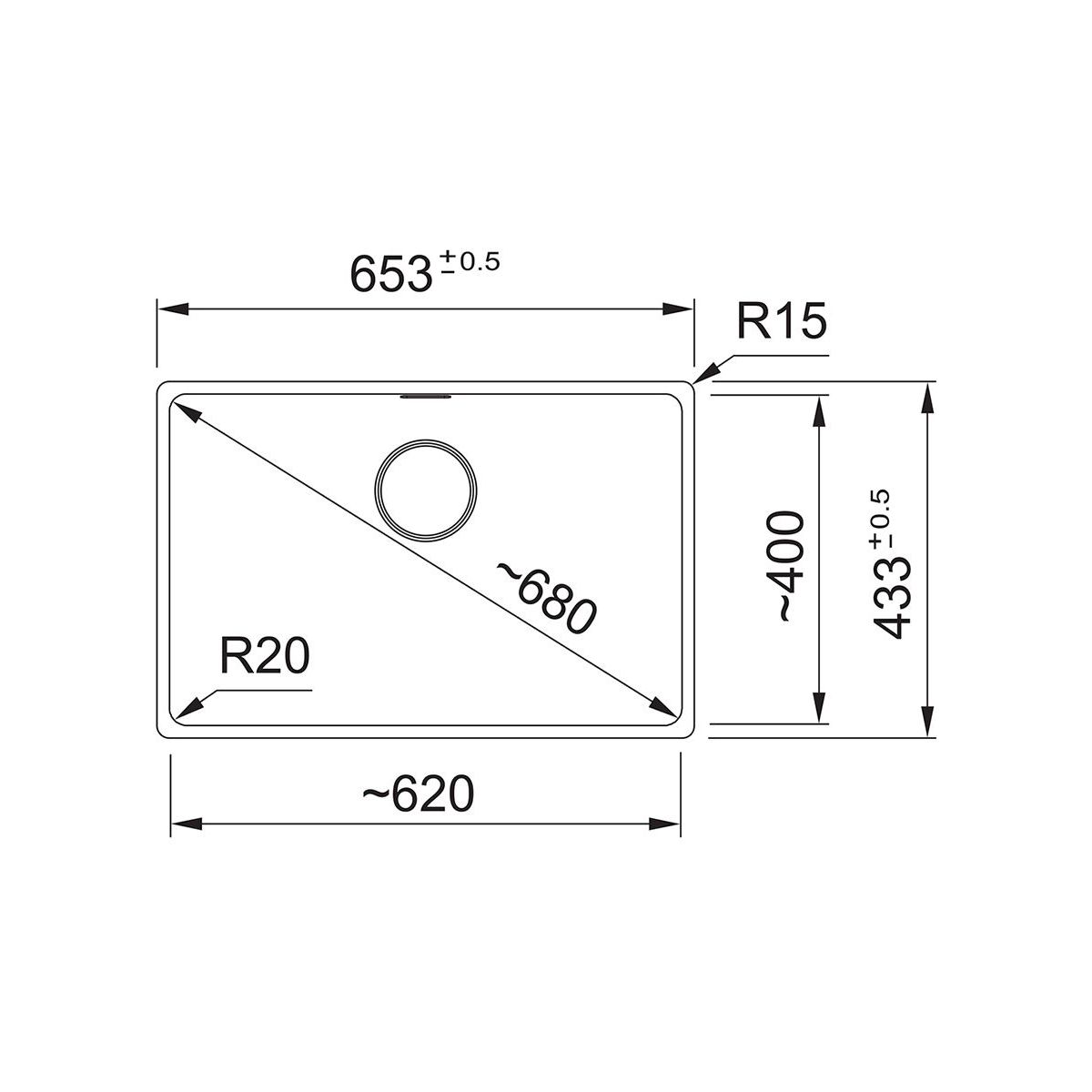 - Abmessungen der Spülwanne: 62 x 40 cm