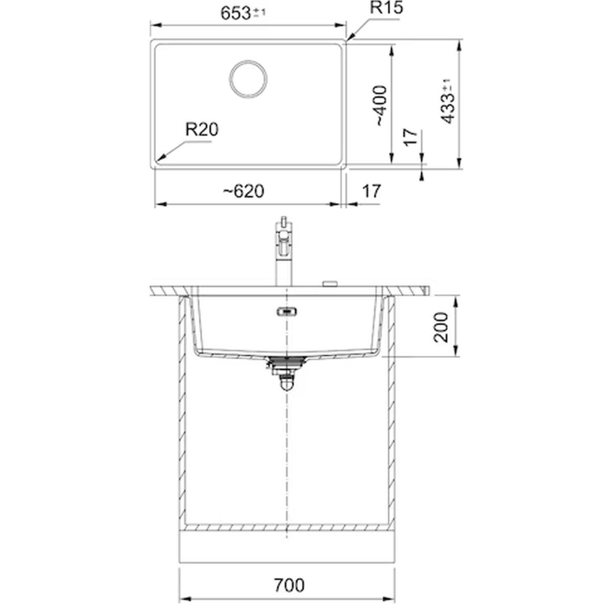 - Abmessungen der Spülbecken: 62 x 40 cm