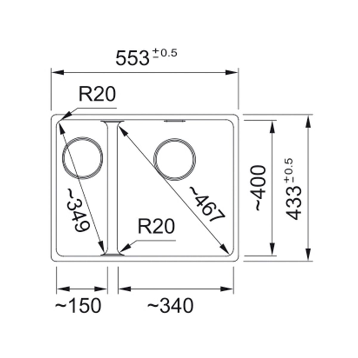 - Ausschnitt: 52 x 40 cm (R=20 mm)