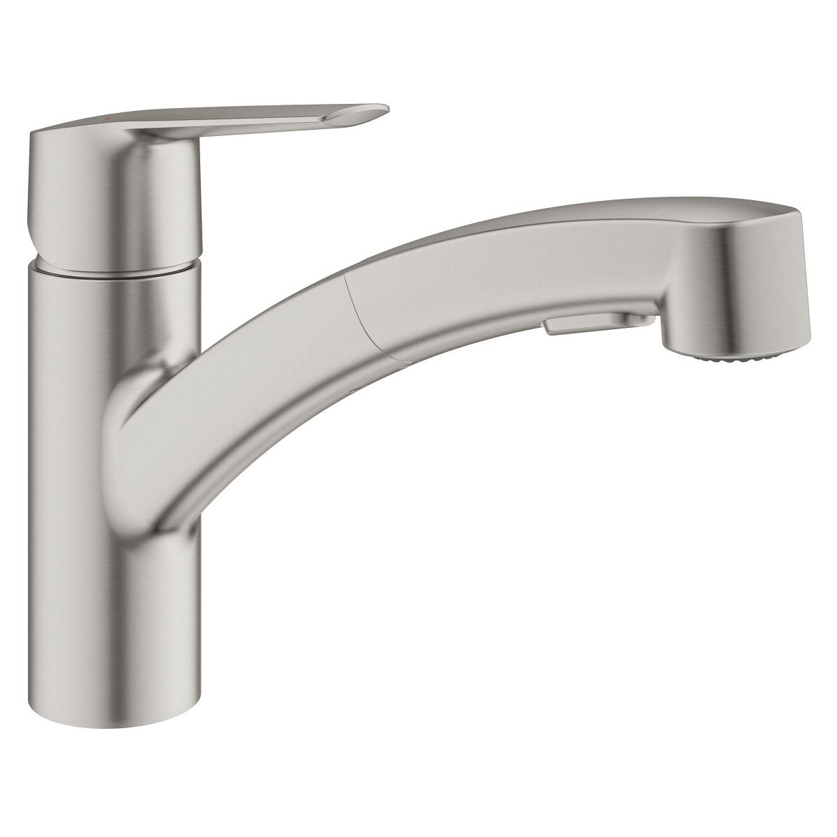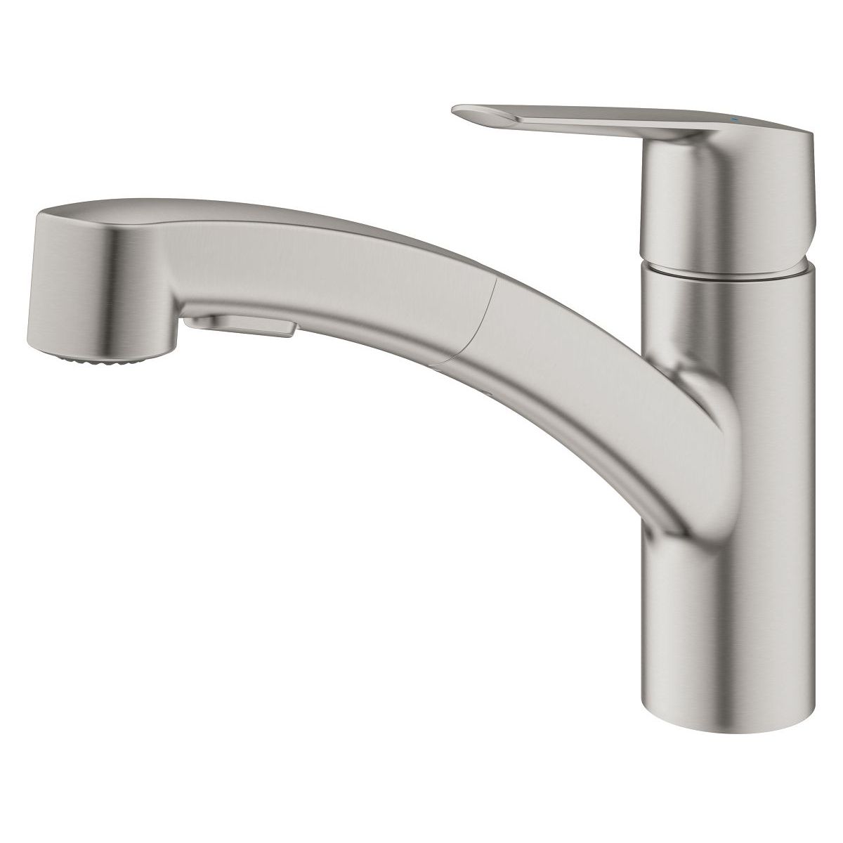 - ausziehbarer Auslauf mit Umsteller Standardstrahl/Brause SpeedClean
