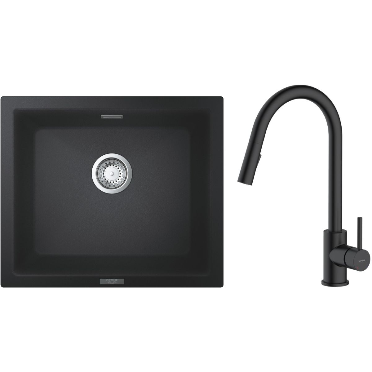 1. Grohe K700U Granitspüle 53,3 x 45,7 cm schwarzer Granit (31654AP0)