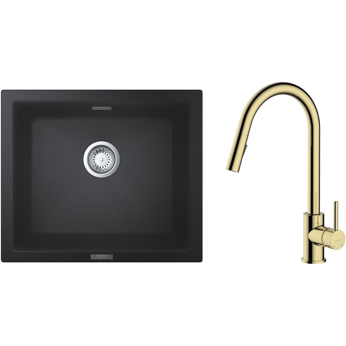 1. Grohe K700U Granitspüle 53,3 x 45,7 cm schwarzer Granit (31654AP0)