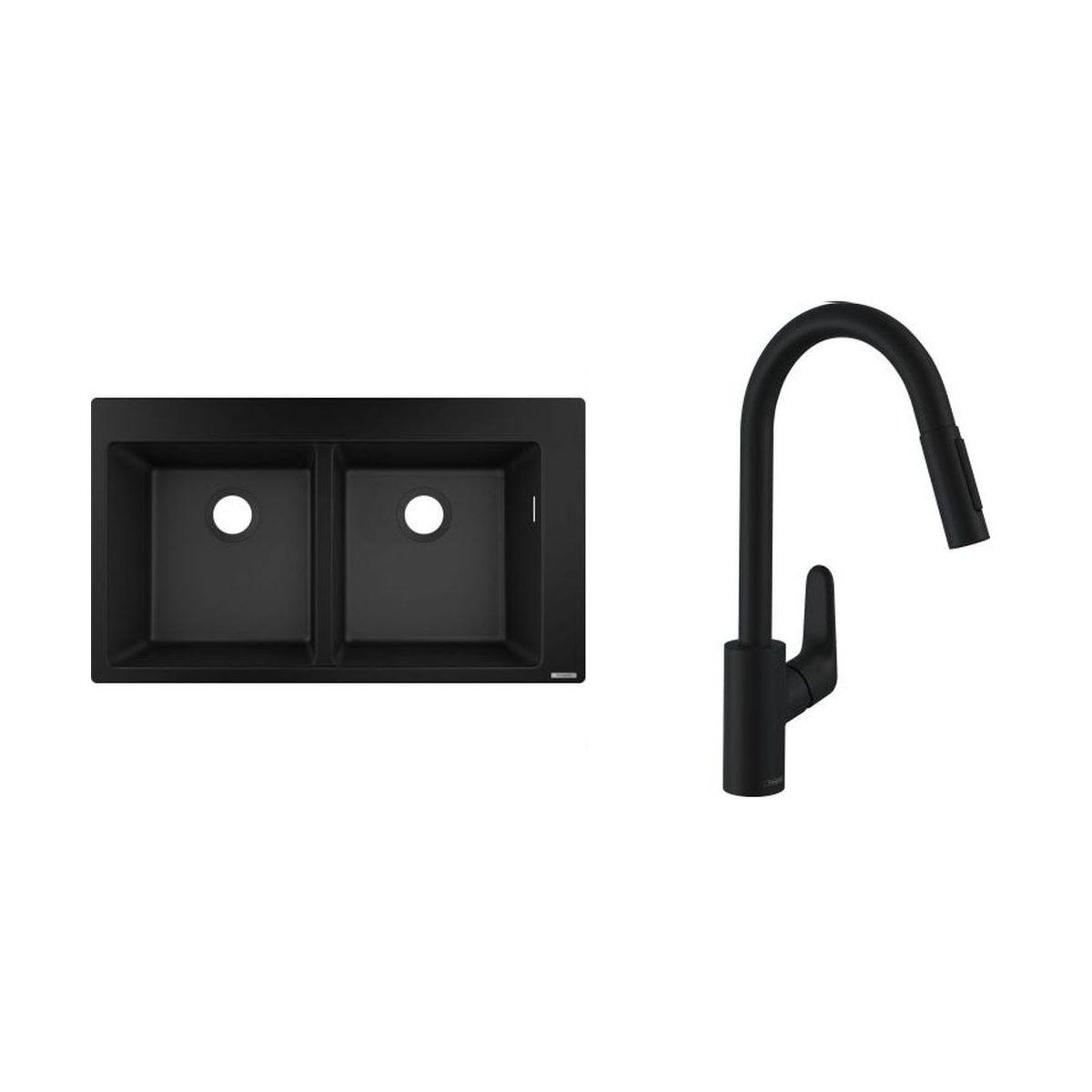 1) Hansgrohe S510-F770 Granitspüle 86 x 49 cm, graphitschwarz 43316170