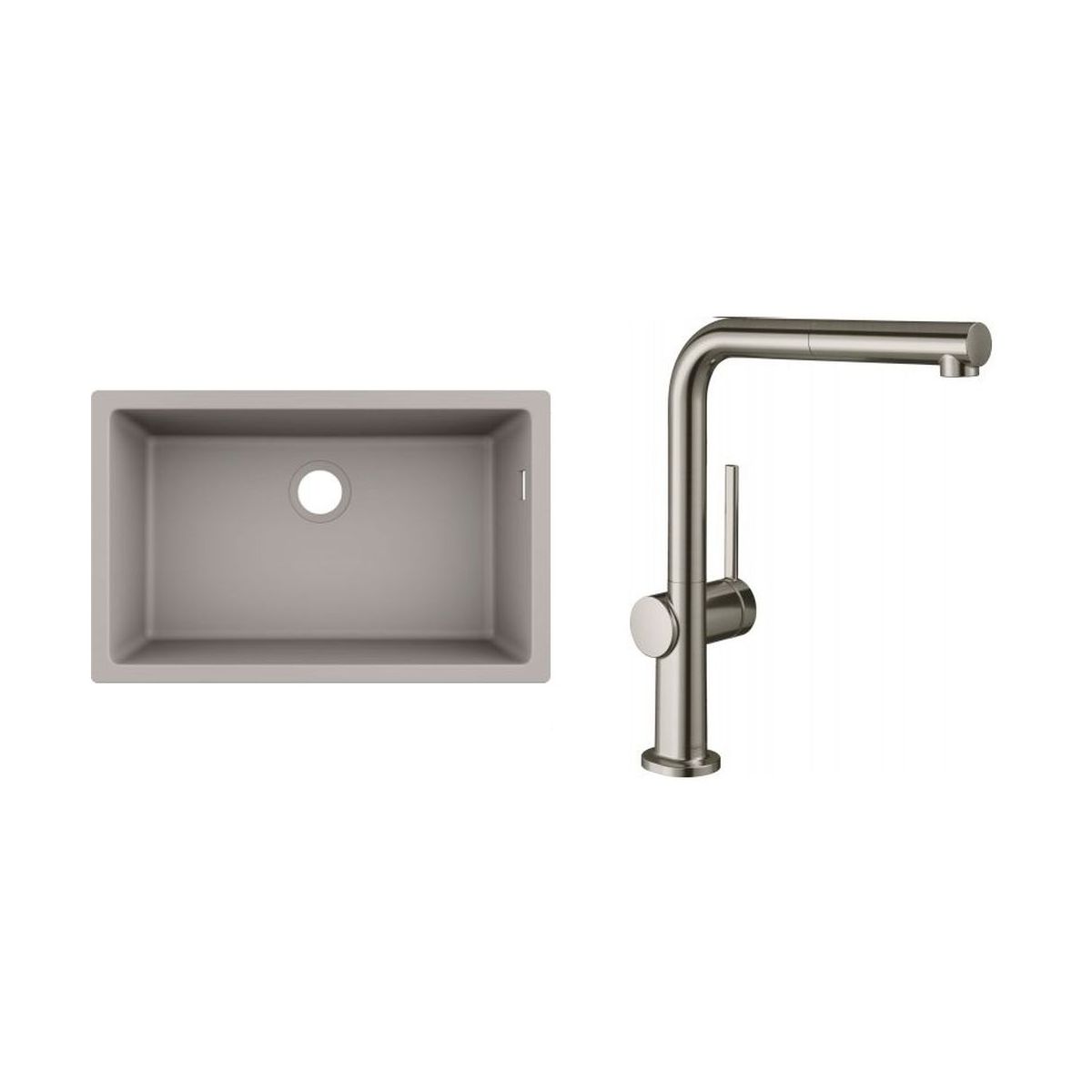 1) Hansgrohe S510-U660 Granitspüle 66 x 40 cm, Betongrau 43432380