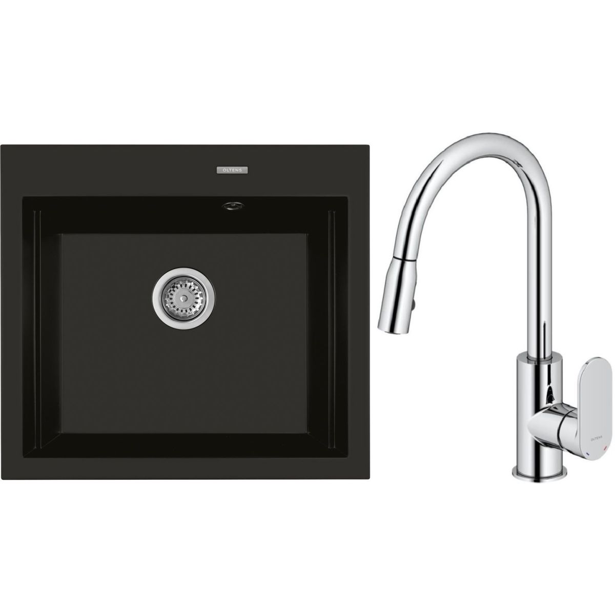 1. Oltens Gravan Granitspüle mit 1 Becken, 57 x 51,5 cm, schwarz matt 72000300