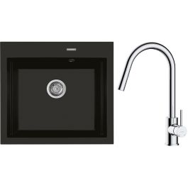 1. Oltens Gravan Granitspüle mit 1 Becken, 57 x 51,5 cm, schwarz matt 72000300