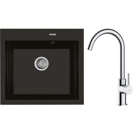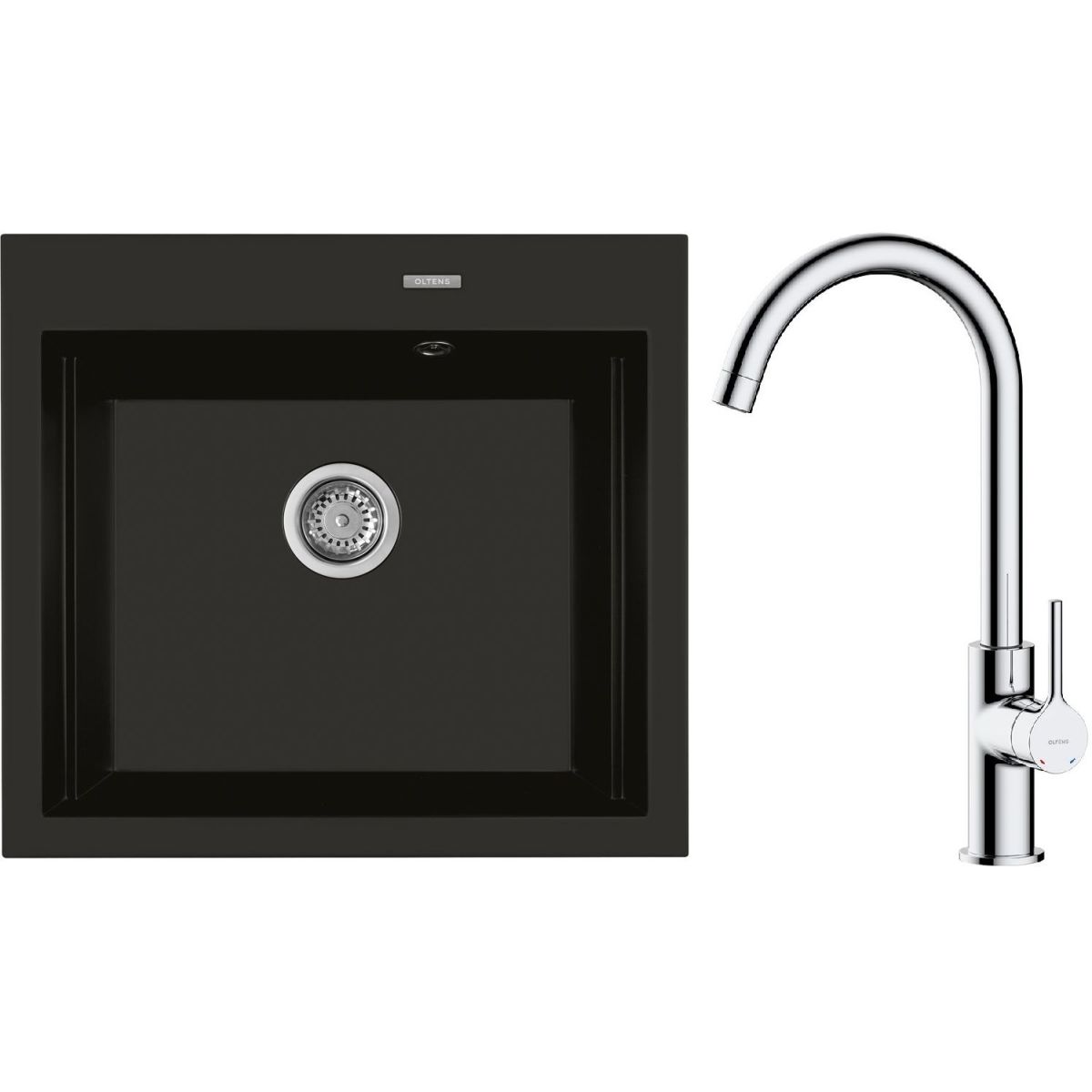1. Oltens Gravan Granitspüle mit 1 Becken, 57 x 51,5 cm, schwarz matt 72000300