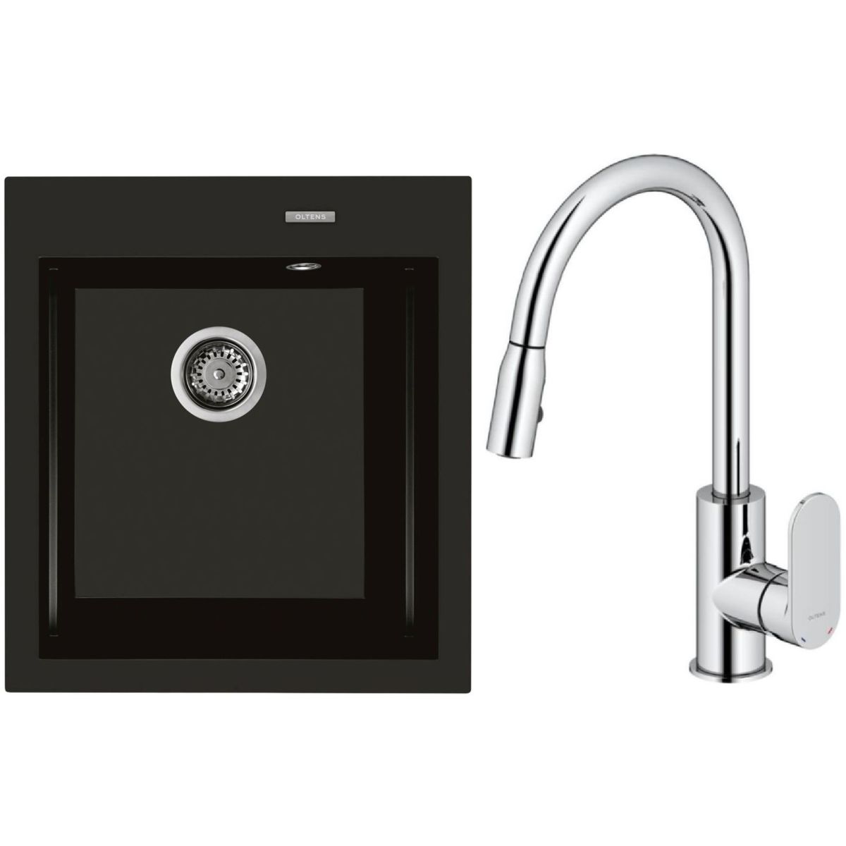 1. Oltens Gravan Granitspüle mit 1 Becken, 47 x 51,5 cm, schwarz matt 72001300