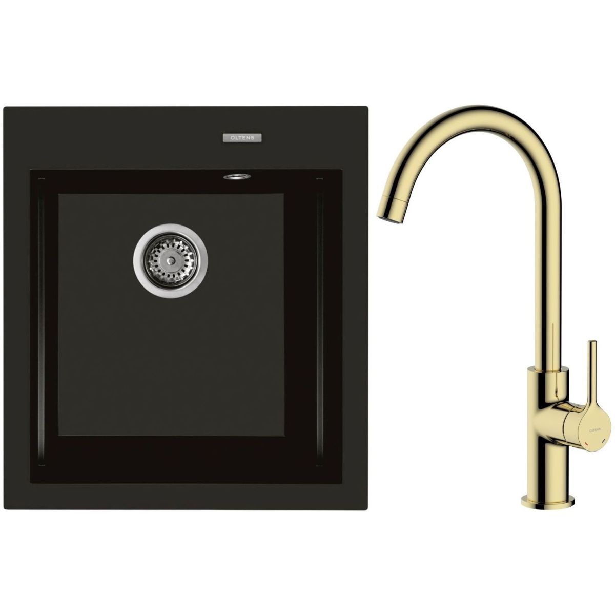 1. Oltens Gravan Granitspüle mit 1 Becken, 47 x 51,5 cm, mattschwarz 72001300