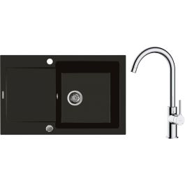 1. Oltens Gravan Granitspüle mit 1 Becken und kurzem Abtropffeld 79 x 50 cm, mattschwarz 72100300