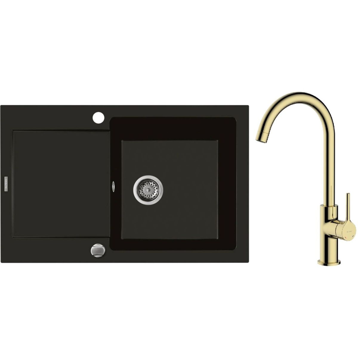 1. Oltens Gravan Granitspüle mit 1 Becken und kurzem Abtropfbereich 79 x 50 cm, mattschwarz 72100300