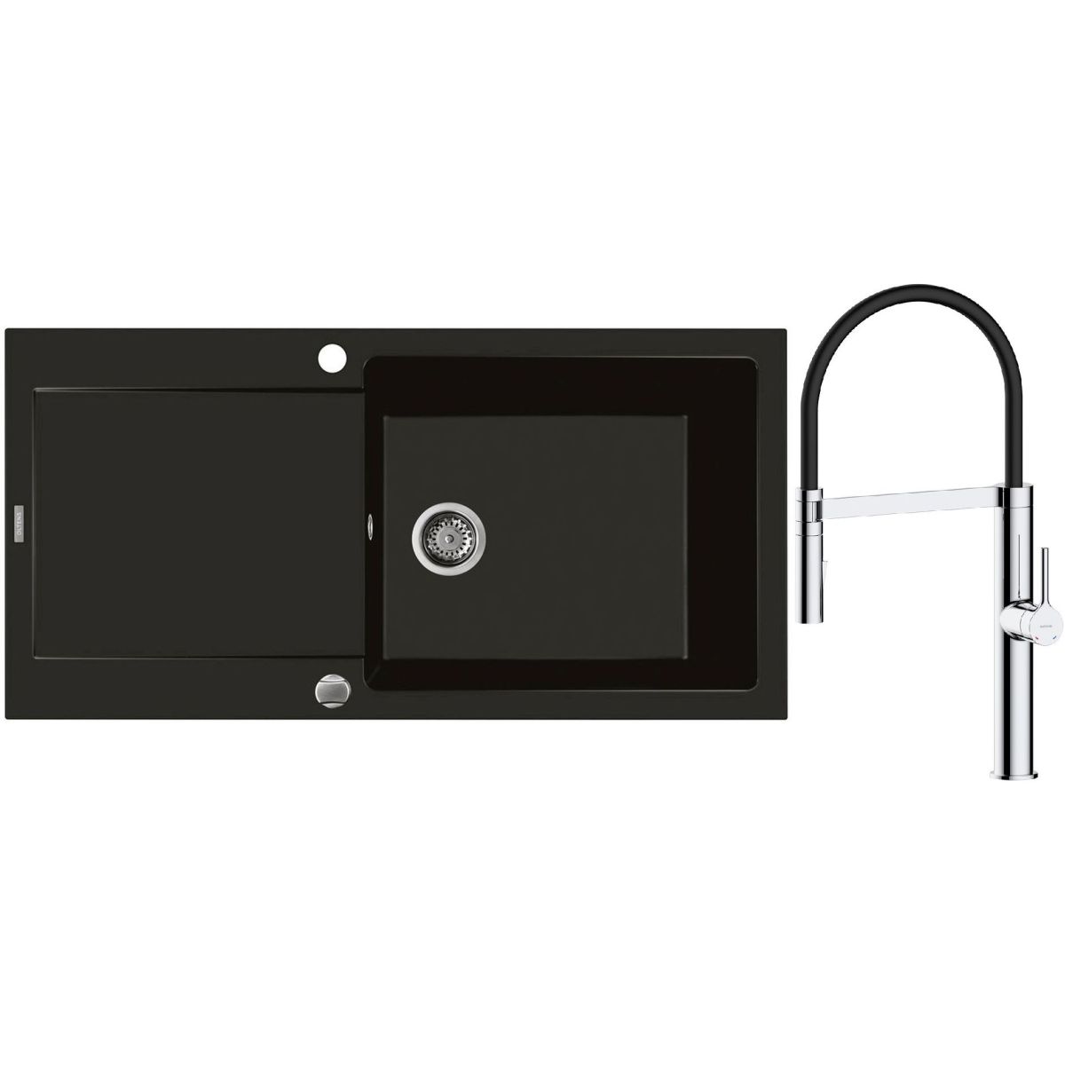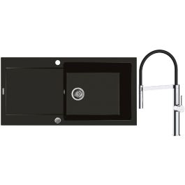 1. Oltens Gravan Granitspüle mit 1 Becken und Abtropffläche 100 x 50 cm, mattschwarz 72101300