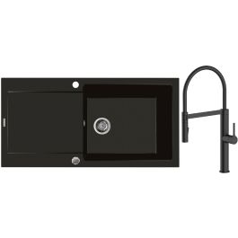 1. Oltens Gravan Granitspüle mit 1 Becken und Abtropffläche 100 x 50 cm, schwarz matt 72101300