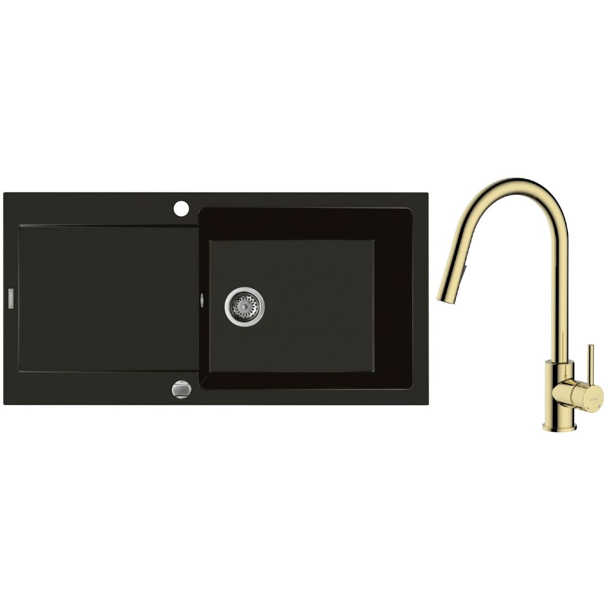 1. Oltens Gravan Granitspüle mit 1 Becken und Abtropffläche 100 x 50 cm, mattschwarz 72101300