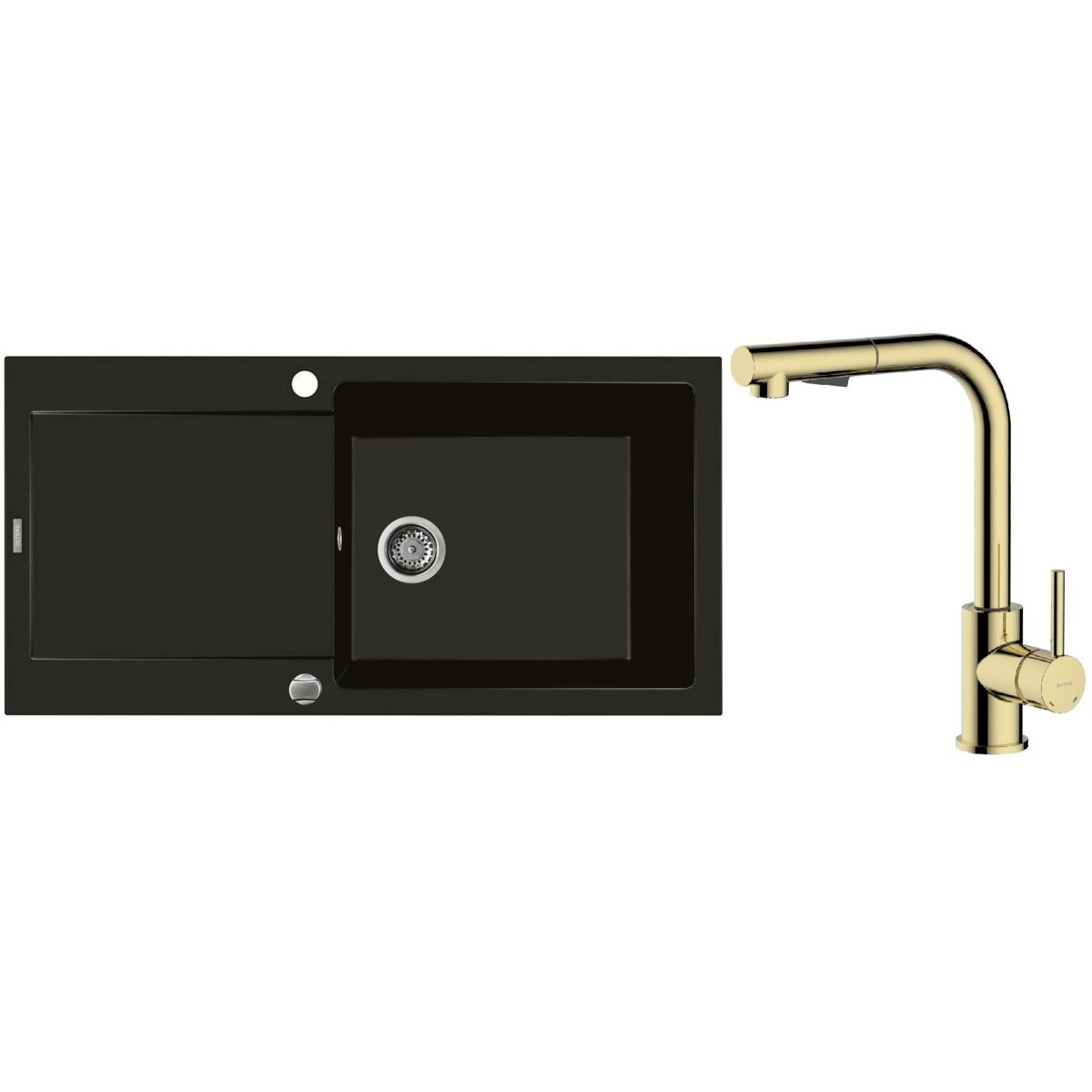 1. Oltens Gravan Granitspüle mit 1 Becken und Abtropffläche 100 x 50 cm, schwarz matt 72101300