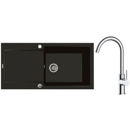 1. Oltens Gravan Granitspüle mit 1 Becken und Abtropffläche 100 x 50 cm, mattschwarz 72101300