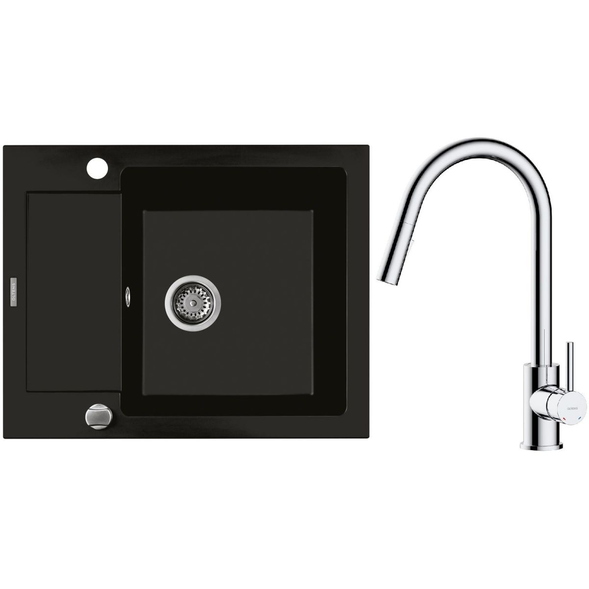 1. Oltens Gravan Granitspüle mit 1 Becken und kurzem Abtropffeld 62 x 50 cm, mattschwarz 72102300