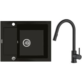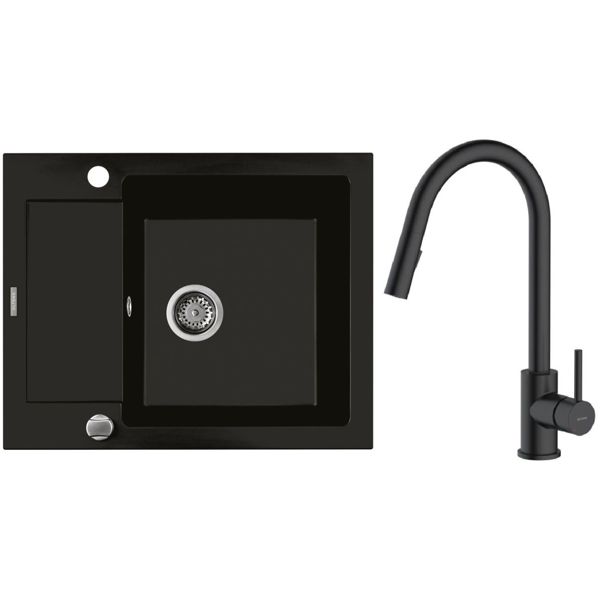 1. Oltens Gravan Granitspüle mit 1 Becken und kurzem Abtropffeld 62 x 50 cm, mattschwarz 72102300
