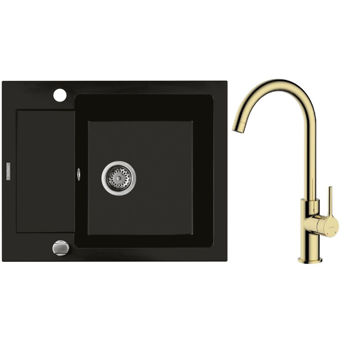1. Oltens Gravan Granitspüle mit 1 Becken und kurzem Abtropffeld 62 x 50 cm, mattschwarz 72102300