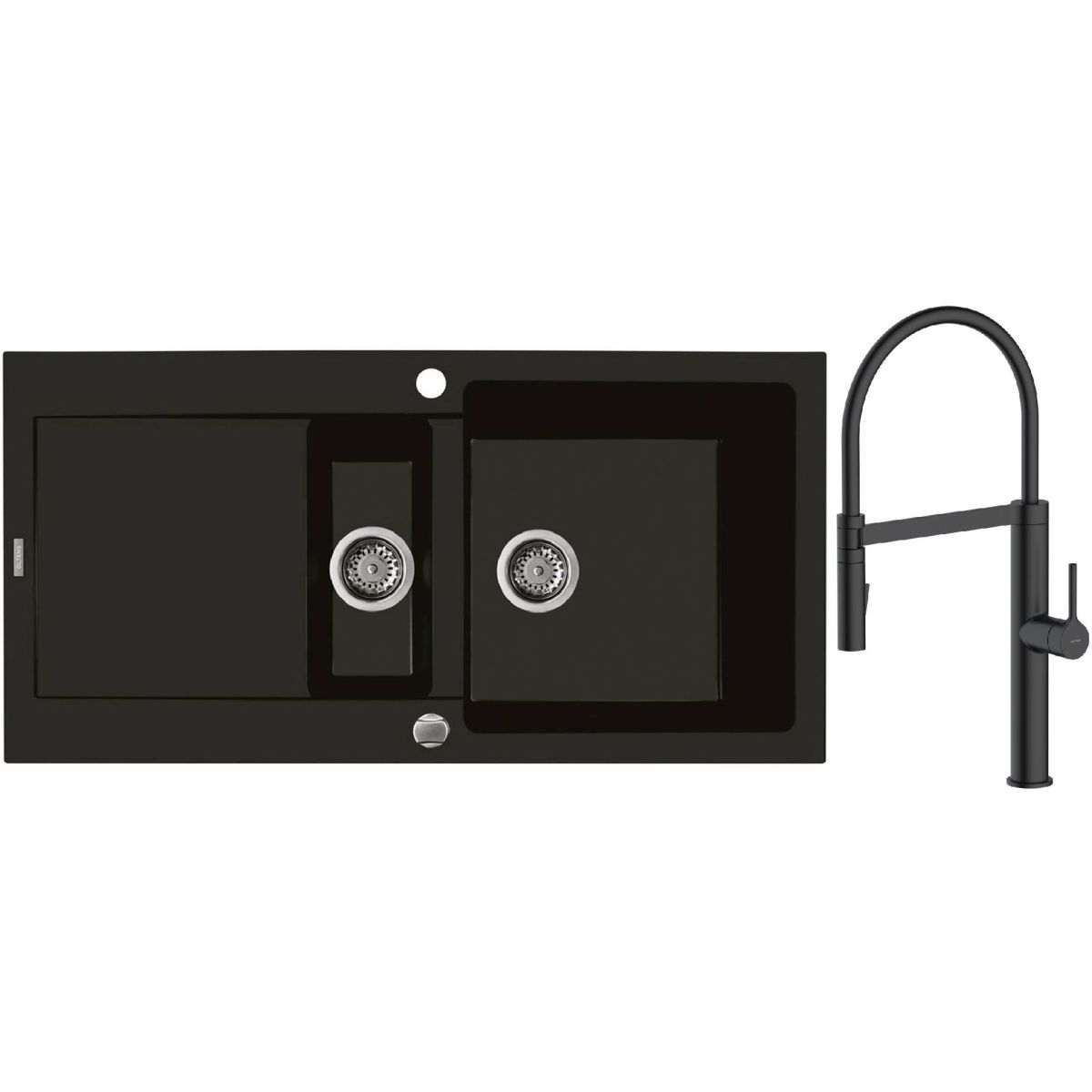 1. Oltens Gravan Granitspüle mit 1,5 Becken und Abtropffläche 100 x 50 cm, schwarz matt 72300300