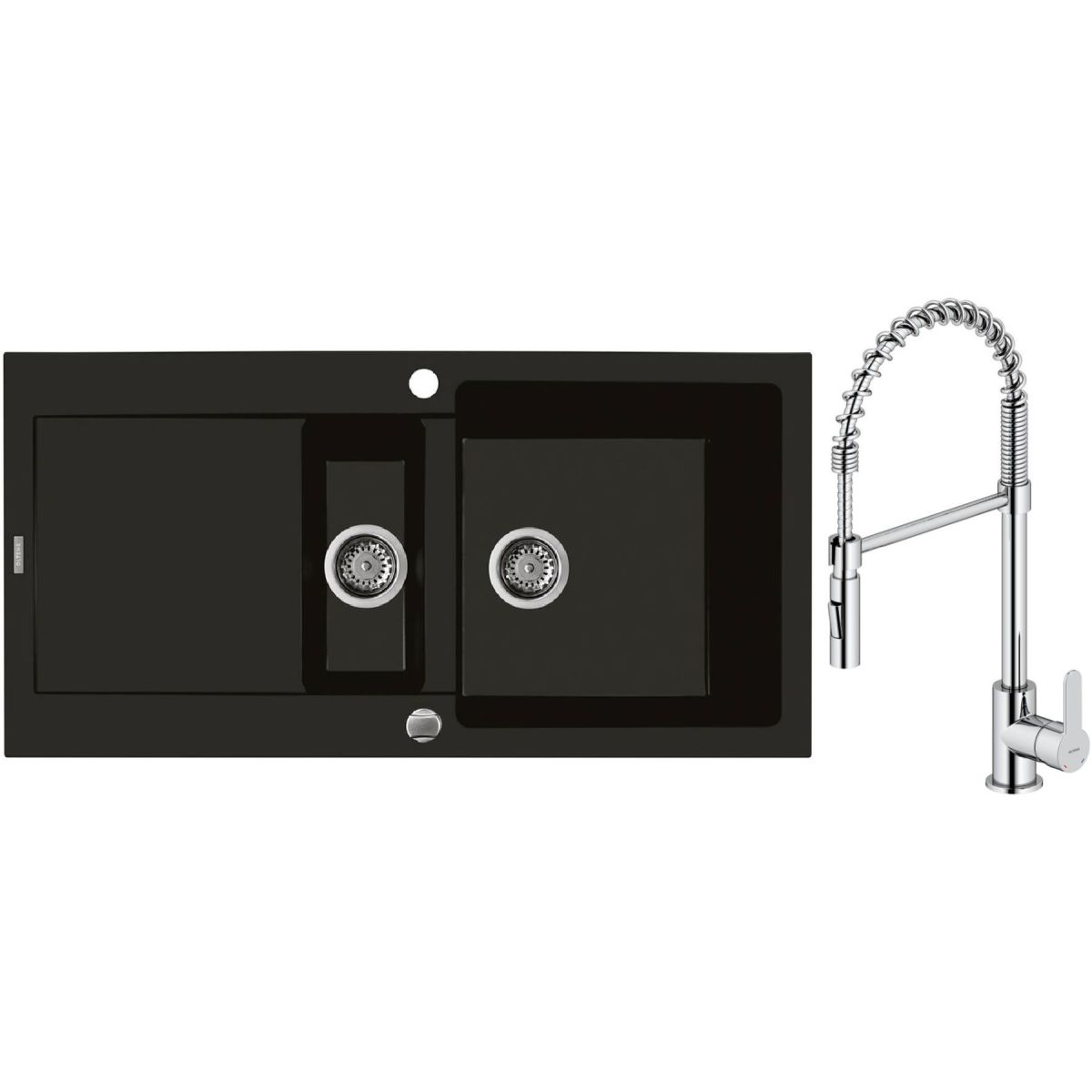 1. Oltens Gravan Granitspüle mit 1,5 Becken und Abtropffläche 100 x 50 cm, schwarz matt 72300300