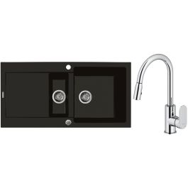 1. Oltens Gravan Granitspüle mit 1,5 Becken und Abtropffläche 100 x 50 cm, schwarz matt 72300300