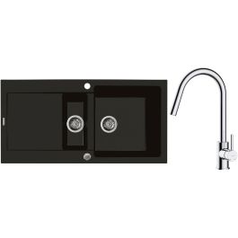 1. Oltens Gravan Granitspüle mit 1,5 Becken und Abtropffläche 100 x 50 cm, schwarz matt 72300300