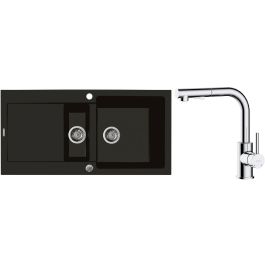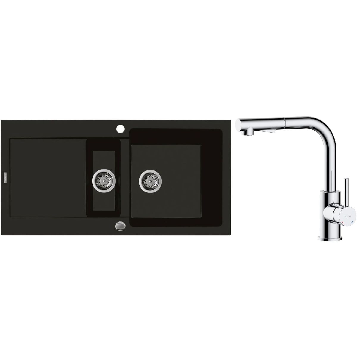 1. Oltens Gravan Granitspüle mit 1,5 Becken und Abtropffläche 100 x 50 cm, schwarz matt 72300300