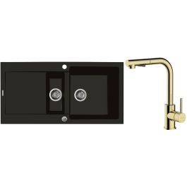 1. Oltens Gravan Granitspüle mit 1,5 Becken und Abtropffläche 100 x 50 cm, schwarz matt 72300300