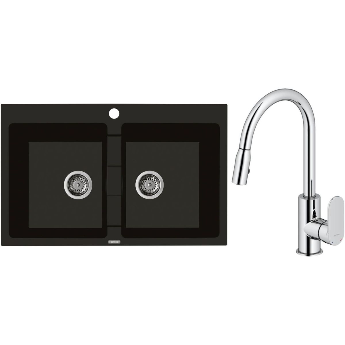 1. Oltens Gravan Granitspüle mit 2 Becken, 78 x 50 cm, mattschwarz, 72400300