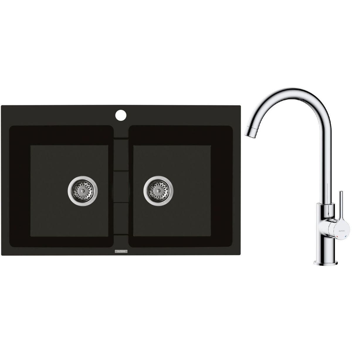 1. Oltens Gravan Granitspüle mit 2 Becken, 78 x 50 cm, schwarz matt, 72400300