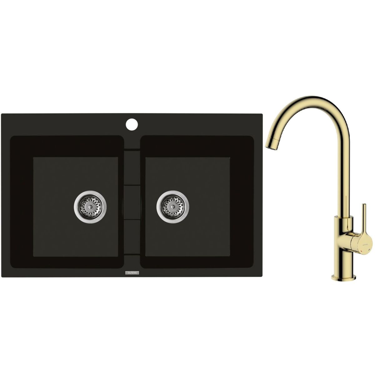 1. Oltens Gravan Granitspüle mit 2 Becken, 78 x 50 cm, schwarz matt, 72400300
