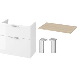 Der Preis gilt für den Schrank, die Arbeitsplatte, zwei Griffe und zwei Füße. Das Waschbecken ist separat erhältlich.
