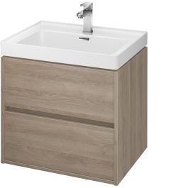 Das Set besteht aus einem hängenden Waschtischunterschrank CREA 60 mit einem Waschbecken CREA 60. Die Front und der Korpus des Schranks sind aus feuchtigkeitsbeständiger Spanplatte in Eichefarbe gefertigt. Der Schrank ist mit einem Touch-Öffnungssystem (sog. PUSH SYSTEM) und zwei geräumigen Schubladen ausgestattet. Das Innere mit einer grauen Leinenstruktur verleiht dem Schrank ein besonders elegantes Aussehen. Das Waschbecken CREA ist aus ROCKLITE-Keramik gefertigt, wodurch es erstaunlich widerstandsfähig, leicht und extrem dünnwandig ist.