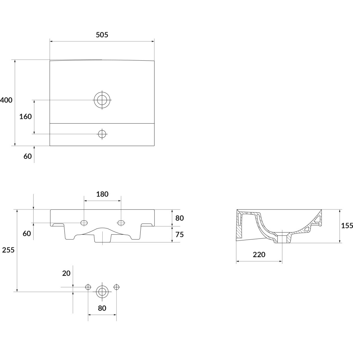 1. Waschbecken 50 x 40 cm Cersanit Larga K120-008