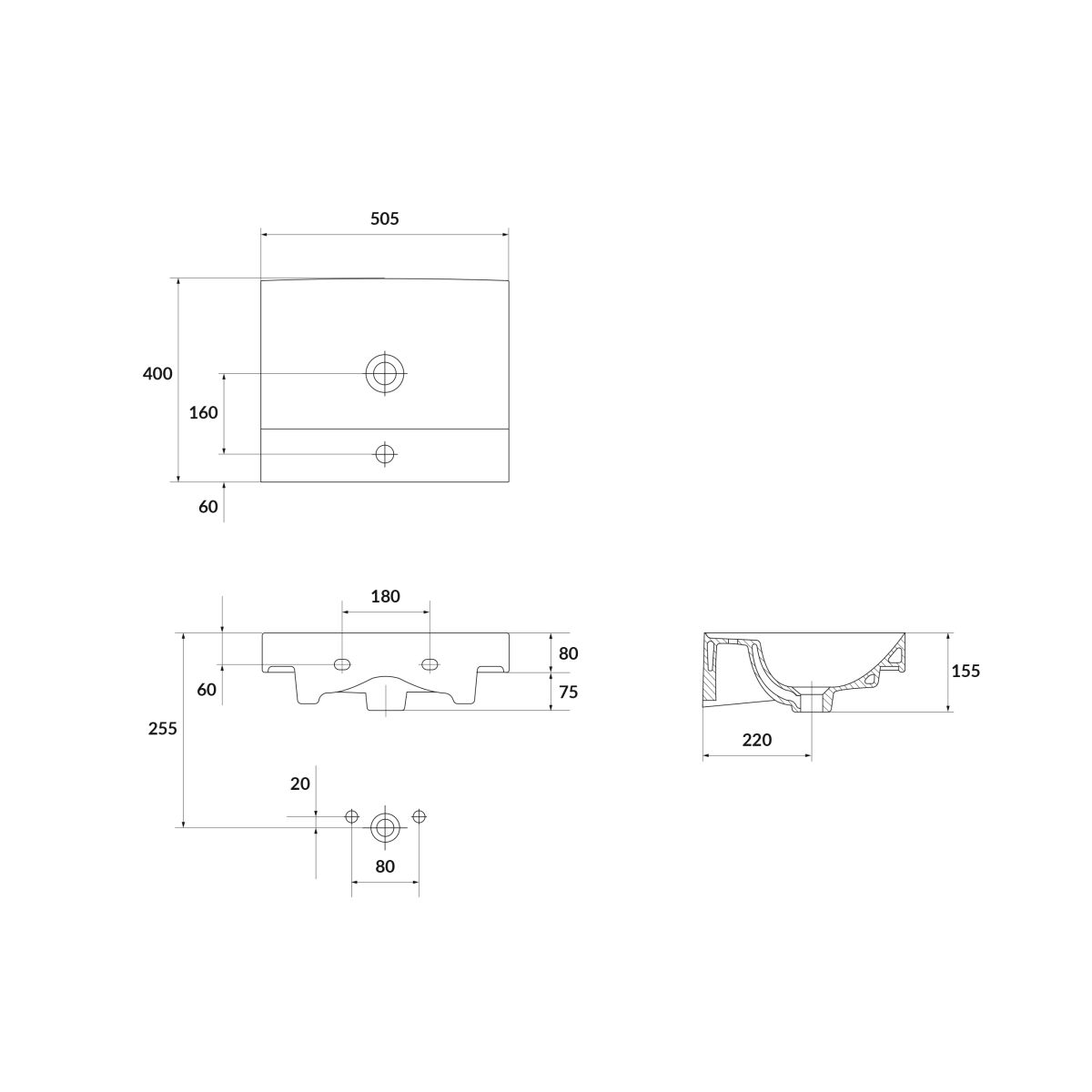 - mit 1 Loch für die Armatur