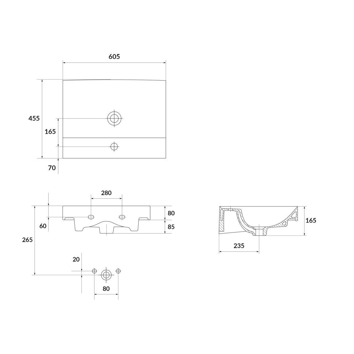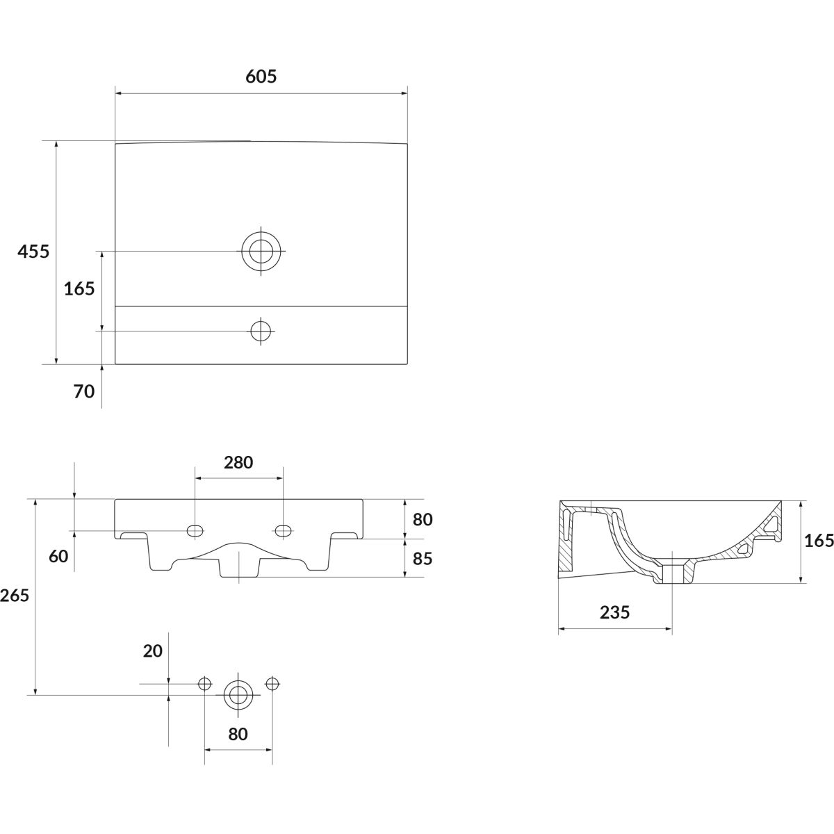 1. Waschbecken 60 x 40 cm Cersanit Larga (K120-009)
