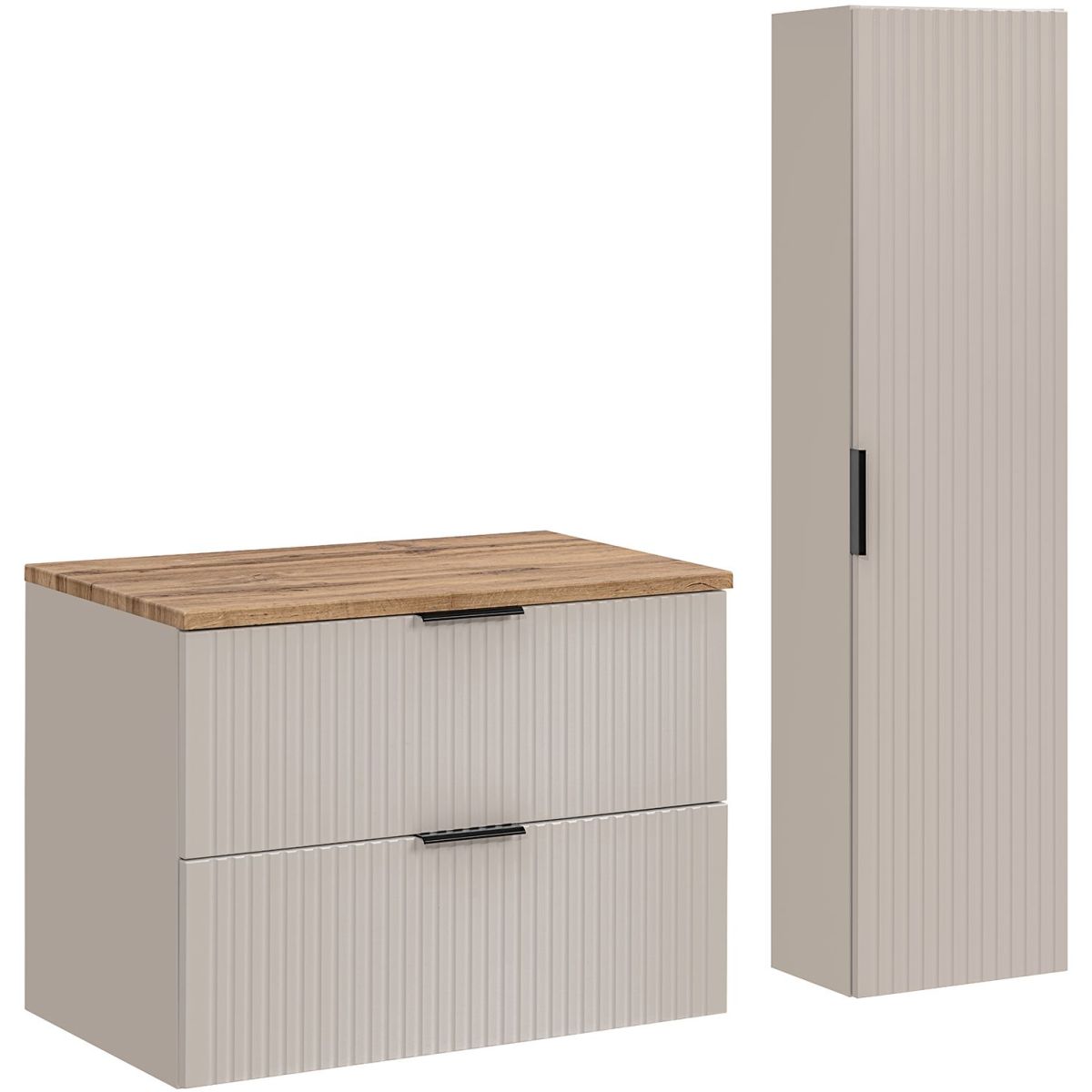 Die Kollektion ADEL in einer neuen Kaschmir-Ausführung zeichnet sich durch klassische Proportionen in Kombination mit einzigartigen, vertikal gefrästen Fronten aus. Dank dieser Kombination sind die Möbel dieser Kollektion universell einsetzbar und eignen sich sowohl für moderne als auch für klassische Einrichtungen. Ihre hohe Funktionalität garantiert selbst den anspruchsvollsten Nutzern höchsten Komfort. Die Kollektion besteht aus hängenden Waschbeckenunterschränken in den Größen 40 cm, 60 cm und 80 cm, einem hohen Säulenschrank und Arbeitsplatten in den Größen 60 cm, 80 cm und 120 cm, wodurch wir sowohl kleinere als auch größere Sets zusammenstellen können. Ein weiterer Vorteil dieser Kollektion ist die Möglichkeit, die Farbe der Griffe auszuwählen, da für jeden Schrank drei Farboptionen zur Auswahl stehen: Goldglanz, Chromglanz und Mattschwarz. So können wir die Farbe der Griffe an die Armaturen und Spiegel in verschiedenen Rahmenfarben anpassen oder in Zukunft das Aussehen der Möbel auffrischen. Wir laden Sie herzlich ein, sich mit dem Angebot der ADEL-Kollektion vertraut zu machen.