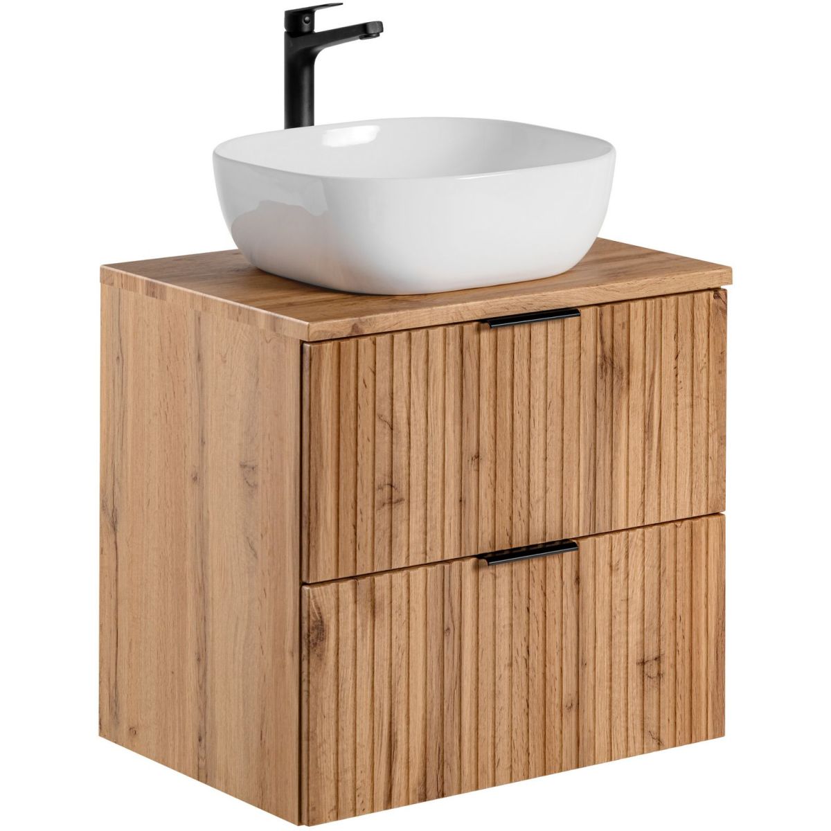 Das Möbelset SET -ADO B 60 CM SMILE 40 aus der Kollektion Adel Oak ist ein hervorragendes Angebot für alle, die eine moderne und funktionale Badezimmerausstattung suchen. Das Set besteht aus drei Elementen: einem Waschbeckenunterschrank, einer Waschtischplatte und einem Aufsatzwaschbecken.
