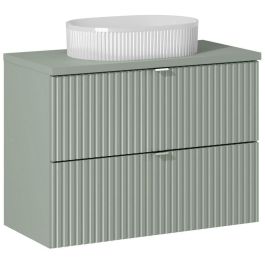 Gestalten Sie Ihr Badezimmer in modernem Stil mit einem 80 cm breiten Möbelset mit Waschtischplatte und Aufsatzwaschbecken Beyond 5 White. Dieses elegante Set aus der Kollektion Line Reed Green ist die perfekte Ergänzung für jedes Badezimmer. Es ist 40 cm tief und die Farbe Reed Green verleiht dem Raum einen Hauch von Frische und Natur.