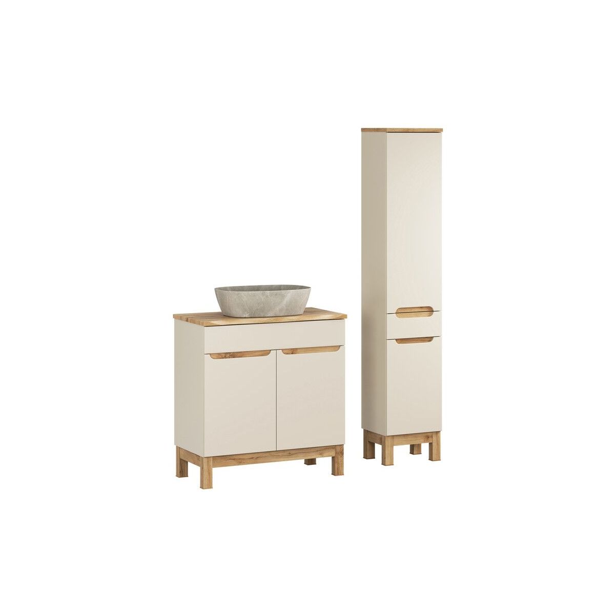 - Möbel im Dekor Kaschmirbeige mit Akzenten im Dekor Eiche Wotan