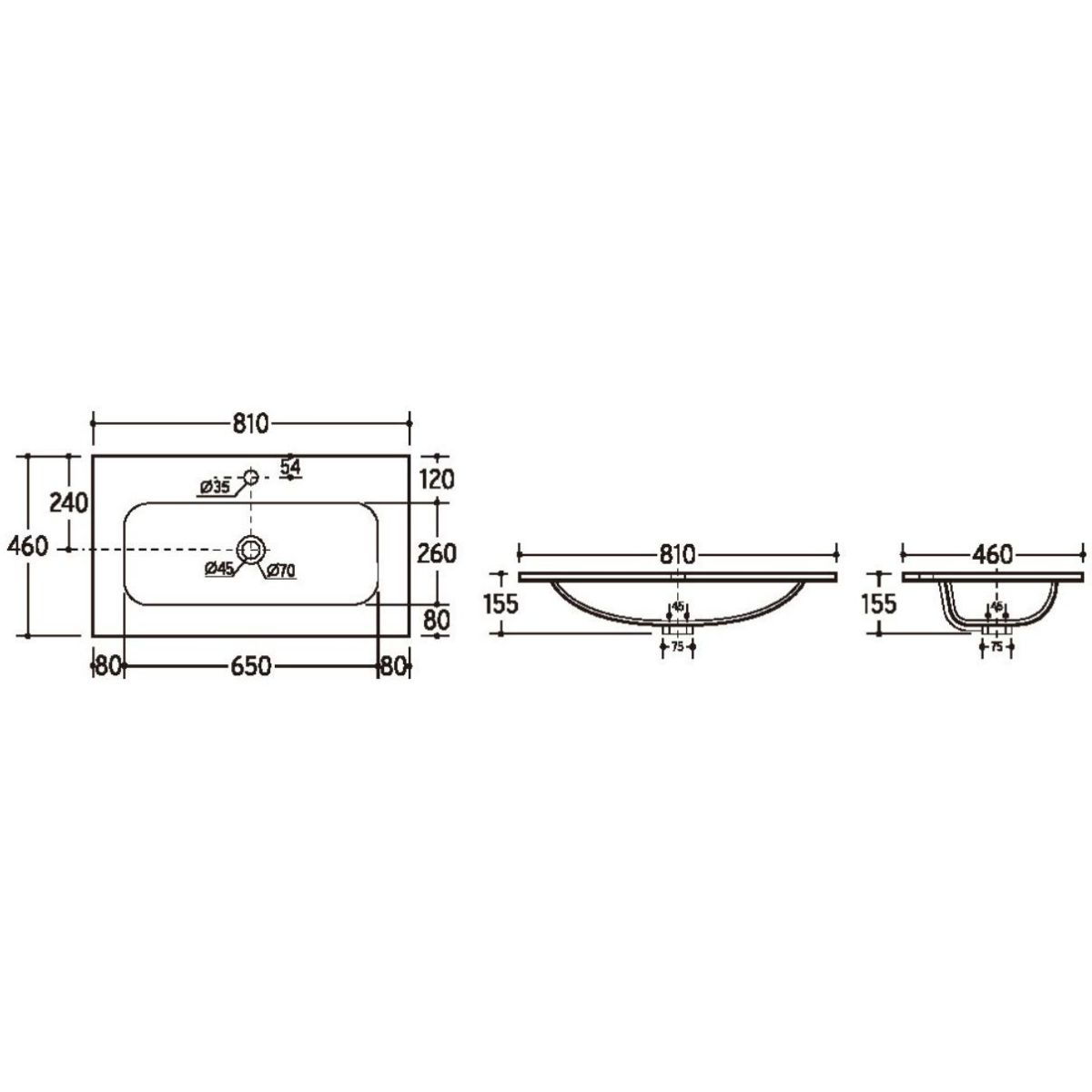 2. Comad Fly Waschbecken 81 x 46 cm, rechteckig, Möbel, weiß FLY WHITE GLOSS UM 80-46 DP ( E-8073-80 )