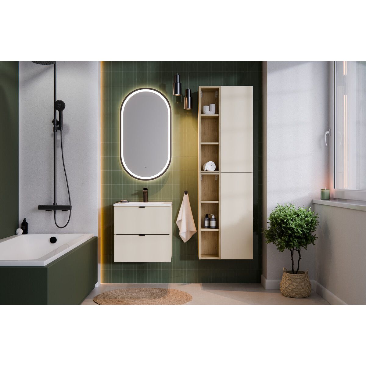 - Ergonomische Höhe der Waschtischunterschränke 50 cm