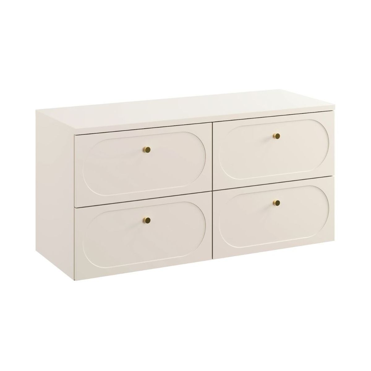 Der Waschbeckenunterschrank 60 cm mit zwei Schubladen aus der Kollektion Donna Sand ist eine moderne Neuinterpretation des klassischen Stils, inspiriert von Subtilität. Die zarten Fronten mit abgerundeten Fräsungen verleihen der Kollektion einen einzigartigen Charakter und Leichtigkeit. Das in der Kollektion verwendete Dekor Sandbeige ist eine Variation der Kaschmirfarben, die die Einrichtungstrends dominieren und Wärme und Harmonie in die Innenräume bringen. Abgerundet wird das Ganze durch goldene Metallknöpfe, die die Eleganz unterstreichen und für ein edles Finish sorgen.