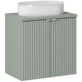 Das Set ist 60 cm breit und 40 cm tief, sodass Sie alle notwendigen Badaccessoires problemlos unterbringen können. Die Fronten mit vertikalen Fräsrillen verleihen den Möbeln ein elegantes Aussehen, während die silberfarbenen Griffe ihnen einen modernen Touch verleihen.