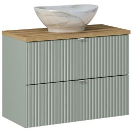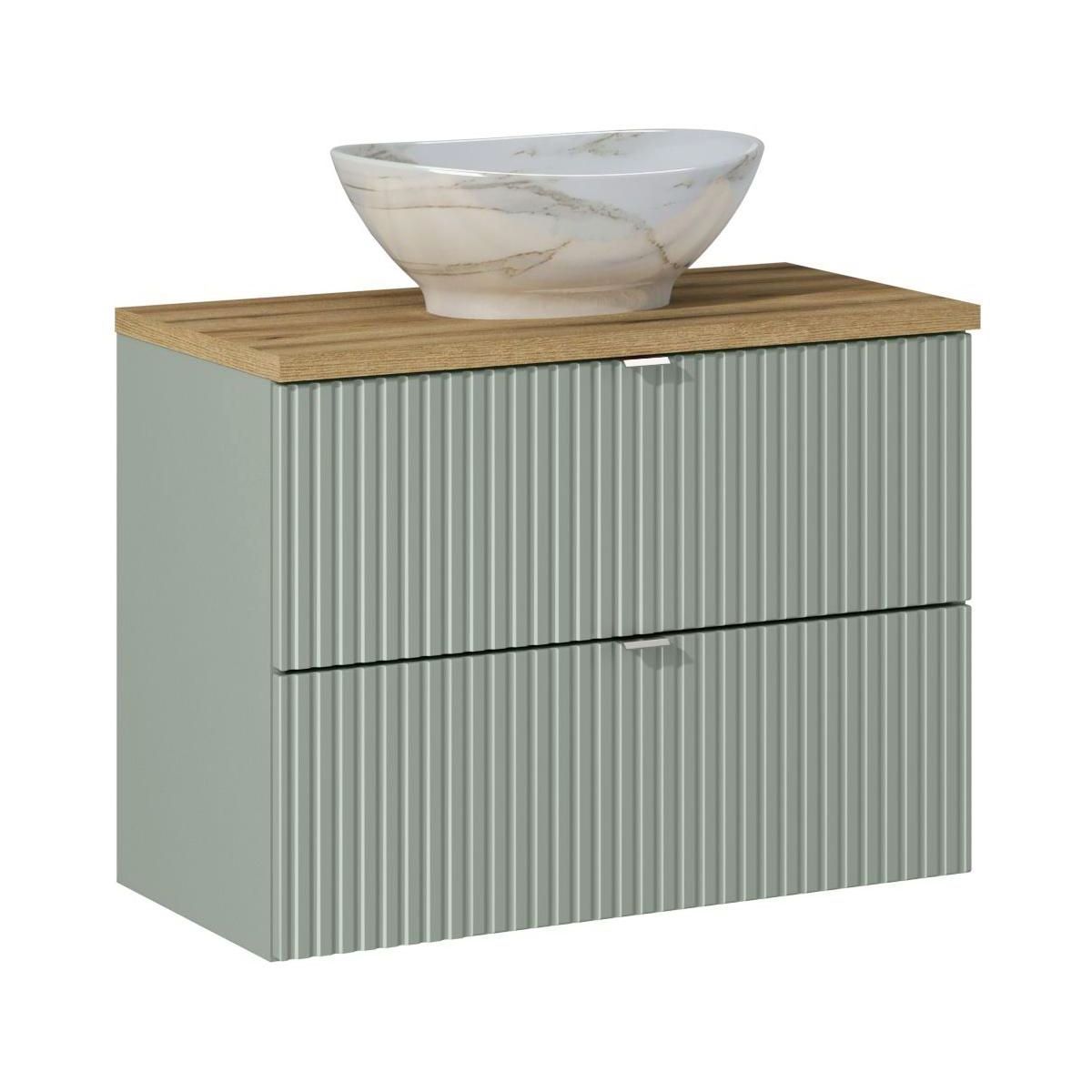 Das 80 cm breite Möbel-Set mit Waschtischplatte und Aufsatzwaschbecken Pati ist die ideale Lösung für ein modernes Badezimmer. Das Element aus der Kollektion Line Reed Green verleiht dem Innenraum ein frisches und natürliches Aussehen. Die Farben des Sets sind Reed Green und Eiche Coast Evoke, die perfekt miteinander harmonieren.